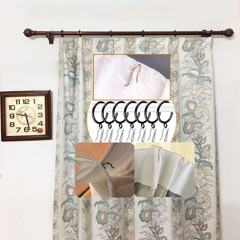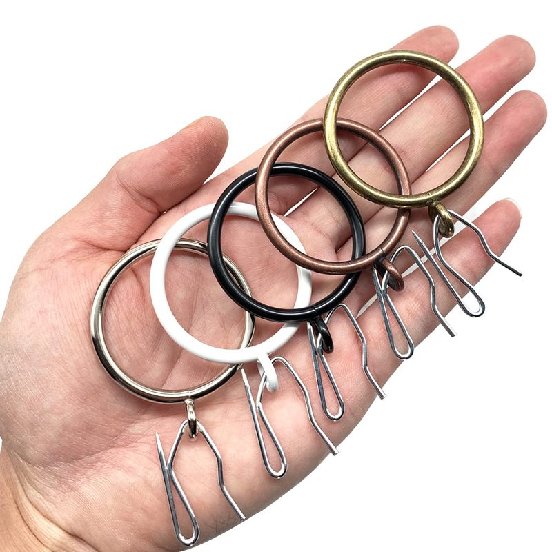 - 1.5-inch drapery rings and pin-on hooks set, great for curtains, shower curtains or lining hanging on curtain rod.