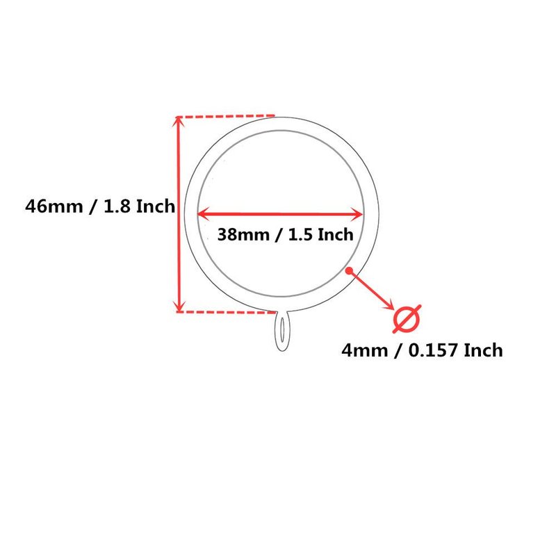 - Inner diameter: 38mm/ 1-1/2 Inch, fits up to 1-1/4 Inch curtain rod; Outer diameter: 46mm/ 1.8-inch.