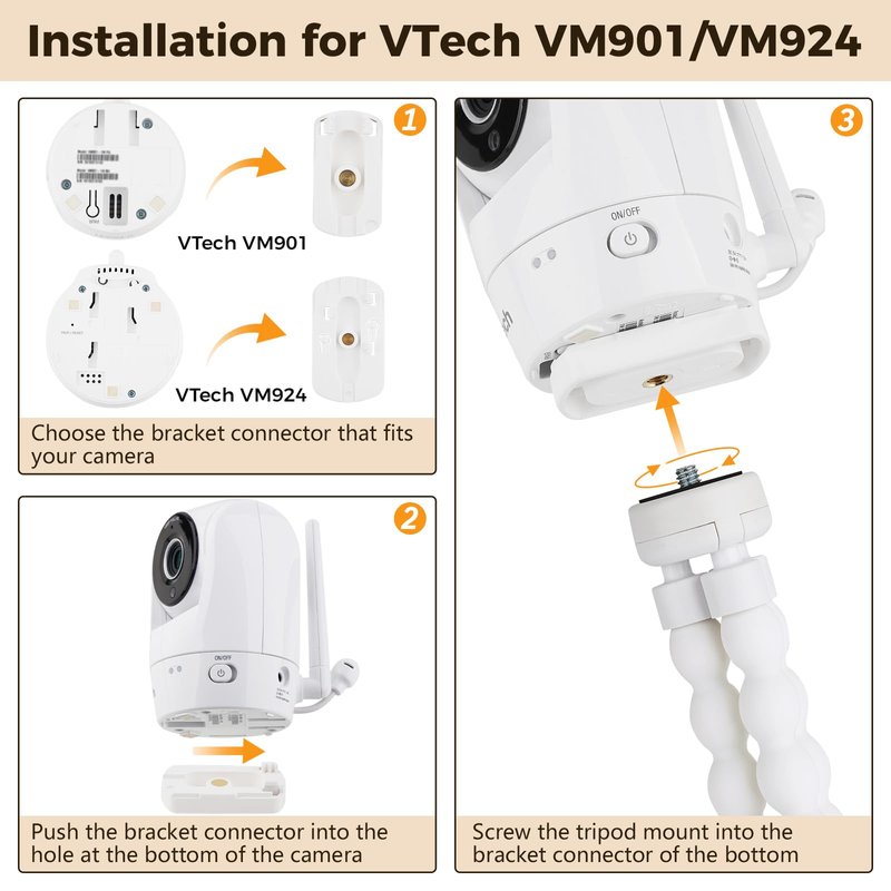 - This baby monitor mount specifically designed for the VTech camera, compatible with latest VTech VM901 and VM924 baby monitor, and other baby cameras with 1/4 threaded hole