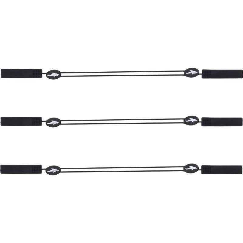 PACKAGE INCLUDES: 3 Sunglass Straps 1 Microfiber Cleaning Cloth FIT: Universal fit for both men and women Extendable strap goes from 9 inches to 14 inches Fits most sunglasses and eyeglasses as long as glasses arm ends are not too wide or thick FEATURES:Three Pack: Outfit each of your different pairs of glasses with our three pack, included with a bonus microfiber glass cleaner cloth, all at a great price Adjustable: Fully adjustable to ensure a snug fit around the head so that glasses do not fall off or slide down your nose. Extendable so that your glasses can be carried around your neck as well! Versatile: Perfect for everyday use or for outdoor sports such as fishing, biking, skiing, hiking, rock climbing, etc. Universal Fit: Fits most sunglasses, daily glasses and reading glasses. One size fits all, making this glasses accessory perfect for both men and women Tail Free: Competitor straps have a single adjuster, creating an ugly and intrusive tail. These cords feature dual sliders that eliminate the tail and allow for a sleek and refined look. Buy ours and live a tail-free life! Eliminate Slippage: Prevent you glasses from constantly slipping down your nose Protect Your Investment: Ensure your valuable glasses donβt fall and get damaged during your upcoming adventure or activity Quality Materials:Made of tough, wear resistant silicone that is built to last