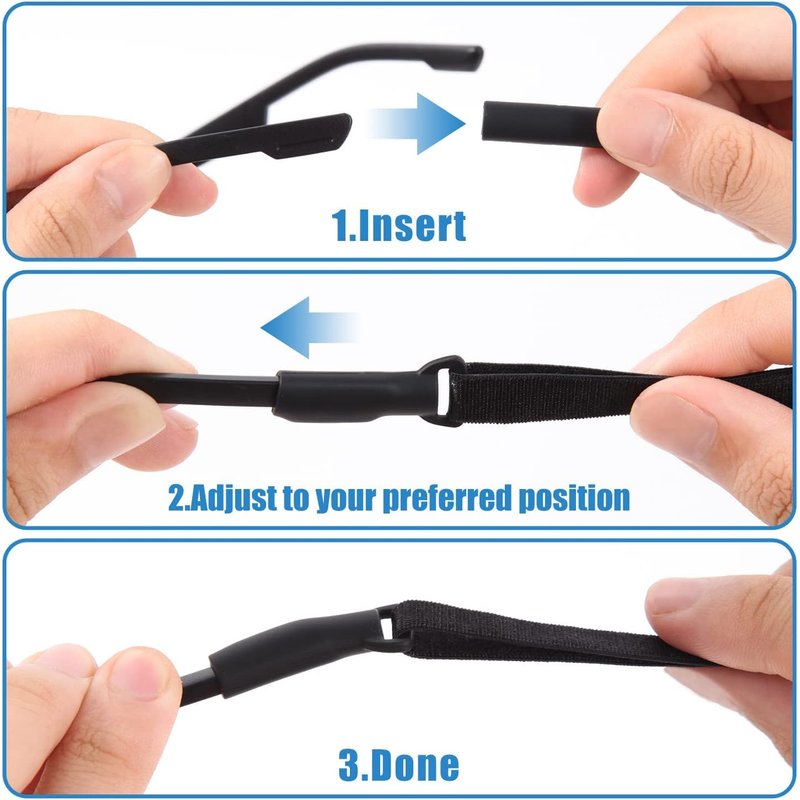- Easy to wear and reusable: After putting on the glasses, insert one of the temple legs into the silicone sleeve, and then finish the other side. Reusable, hand washable, multiple use-use with your glasses every day.