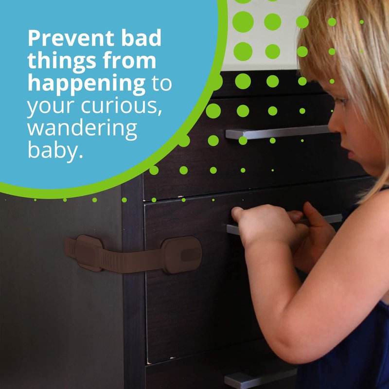 - Flexible and Adjustable - These child proof cabinet latches have adjustable length straps that work well on both flat and curved surfaces. You can use them for your fridge, cabinets, drawers, or any furniture in your house that babies frequently play with.