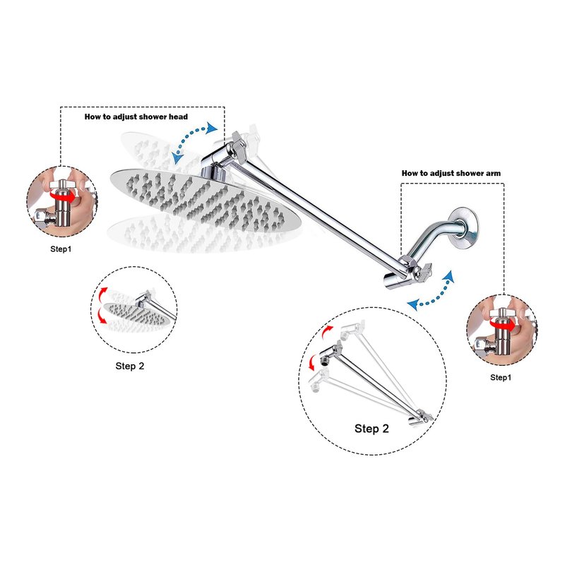 - ๐ UPGRADE SHOWER EXPERIENCE - Adjustable shower arm fits any shower head or hand shower. Allows you to adjust the showerhead for best angle and height. Fixed shower head overhead, you can enjoy a wonderful downpour that is flowing down over your full body. NOTE: This adjustable shower arm is not available for 16'' shower head ! ! !