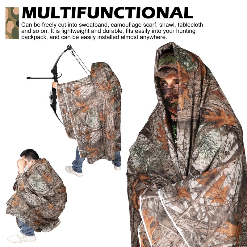 - Great Hide: Camo ground blinds mesh net can hide whatever you are hunting and concealment for your weapon. And you can blend into the natural environment When hunting outdoors.