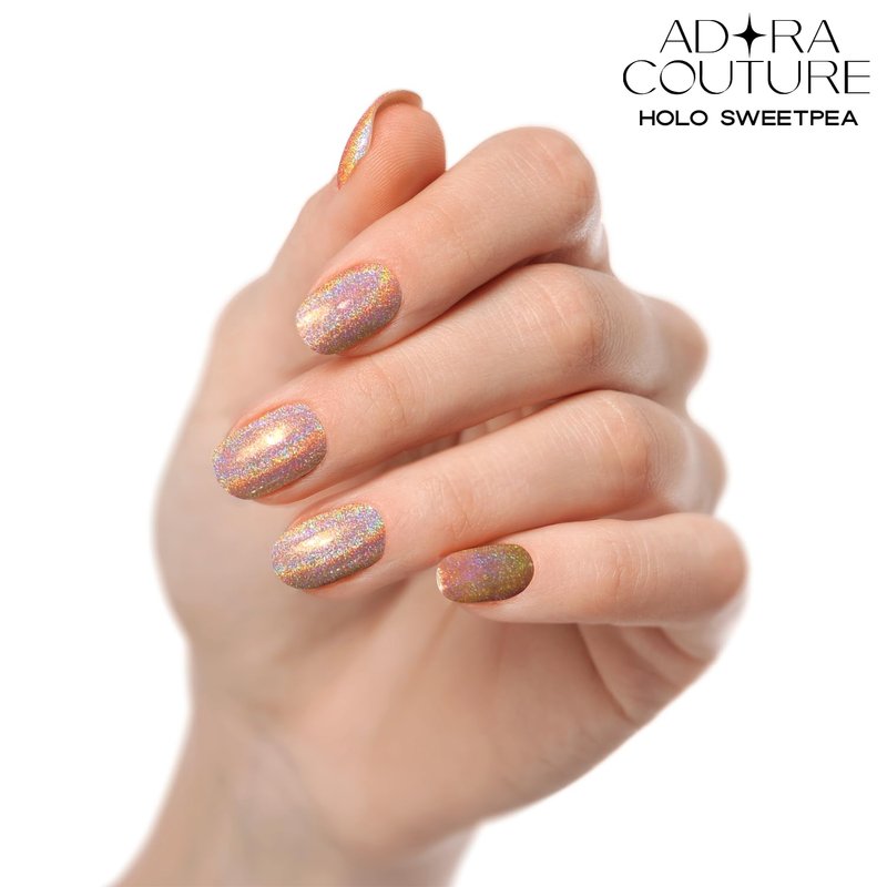 Adora Couture Semi Cured Gel Nail Strips | 20pcs Glossy Holographic Silver Stick-on Gel Nail Sticker | Glaze Nail Strips | Gel Nail Stickers with UV Light Required (Holo Sweet Pea)