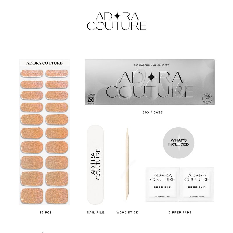 - ✦ 𝐈𝐍𝐍𝐎𝐕𝐀𝐓𝐈𝐕𝐄 𝐆𝐄𝐋 𝐍𝐀𝐈𝐋𝐒 𝐒𝐓𝐑𝐈𝐏𝐒: Made with 100% Real Gel. Through professional technology, Adora Couture presents products made with an innovative formula to achieve the perfect aesthetic for your nails. Adora Couture provides you with an easy solution to have beautiful true gel nails strips you can do at home.
