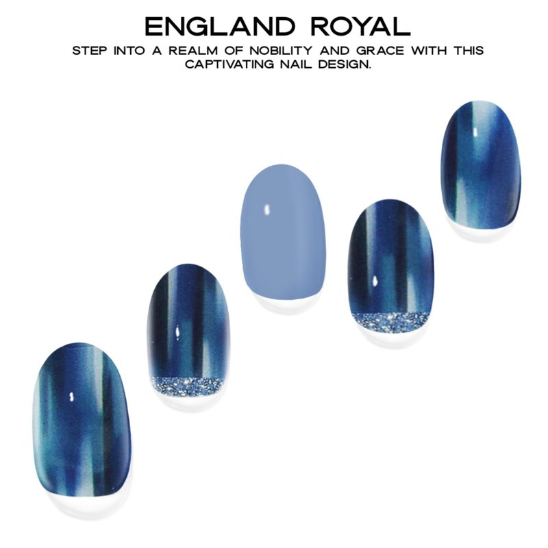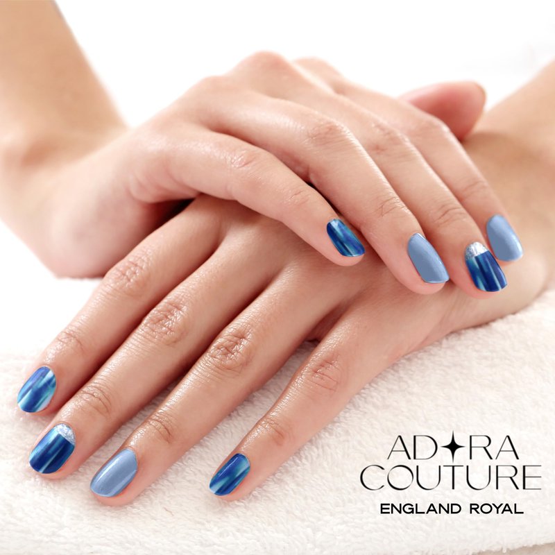 Adora Couture Semi Cured Gel Nail Strips |30pcs Blue Glossy with Glitter & Reverse French Reserve Gel Nail Sticker Nail Wraps for Women | Gel Stickers for Nails UV Light Required (England Royal)