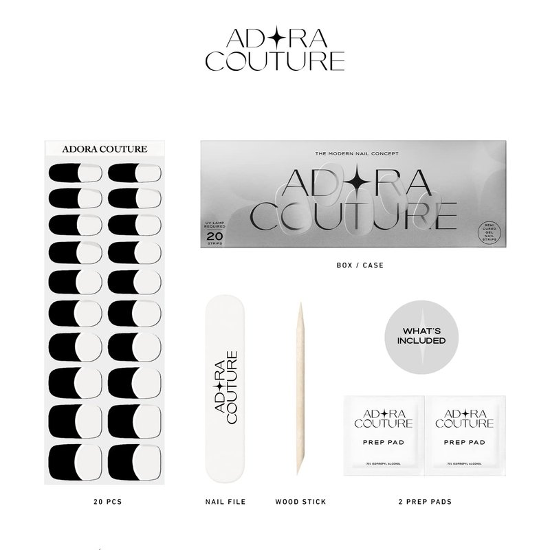 - ✦ 𝐈𝐍𝐍𝐎𝐕𝐀𝐓𝐈𝐕𝐄 𝐆𝐄𝐋 𝐍𝐀𝐈𝐋𝐒 𝐒𝐓𝐑𝐈𝐏𝐒: Made with 100% Real Gel. Through professional technology, Adora Couture presents products made with an innovative formula to achieve the perfect aesthetic for your nails. Adora Couture provides you with an easy solution to have beautiful true gel nails strips you can do at home.