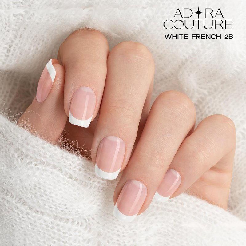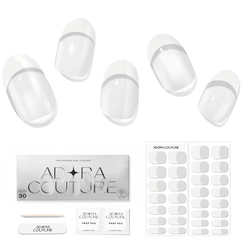 Adora Couture Semi Cured Gel Nail Strips French Tip | 30pcs White French Nail Wraps Mothers Day Gifts for Mom | Gel Nail Stickers with UV Light Required (White French 2B)