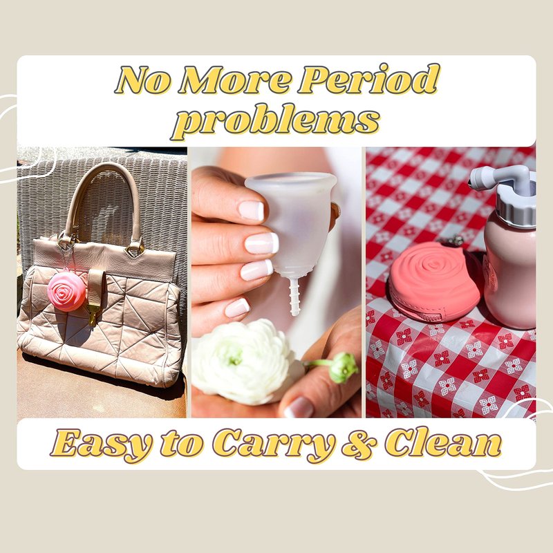 - * [100% Silicone] - Easy to clean with water, Super lightweight, Soft Silicone for squeezing, Bright color for quickly finding it in your bag. Easy to clean with water, remove dirt, and quick to dry. Just shake it off or use a towel to dry it off. A menstrual cup is not included.