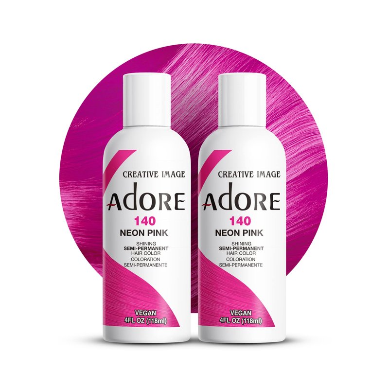 Adore Semi Permanent Hair Color - Vegan and Cruelty-Free Pink Hair Dye - 4 Fl Oz - 140 Neon Pink (Pack of 2)