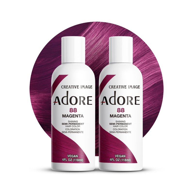 Adore Semi Permanent Hair Color - Vegan and Cruelty-Free Purple Hair Dye - 4 Fl Oz - 088 Magenta (Pack of 2)