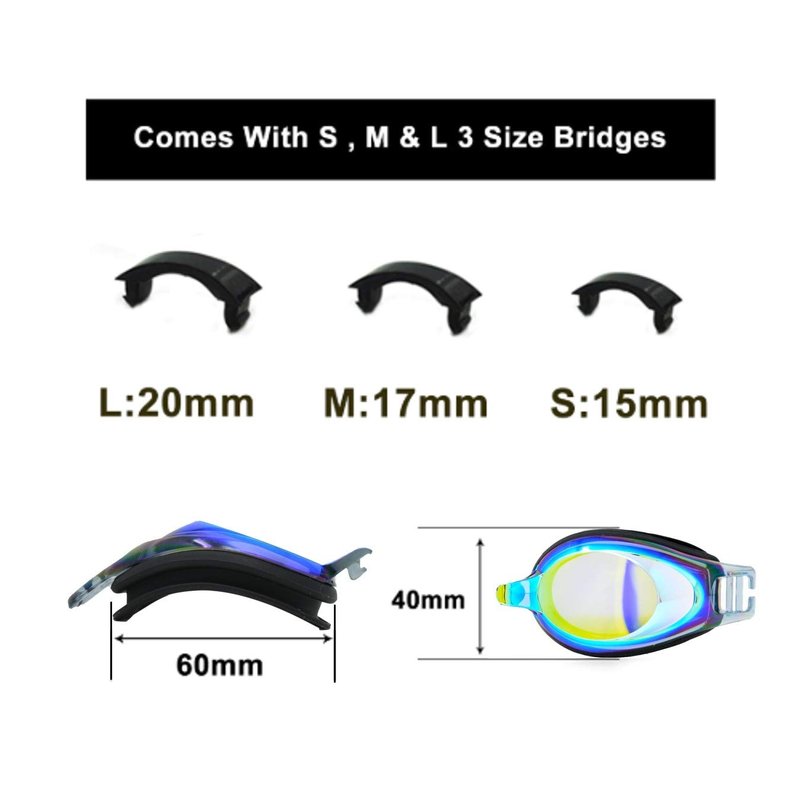 - Package includes: a pair of swimming goggles, 3 nose bridge in different size and a portable protective goggle case. It is also a pretty gift for your friends.