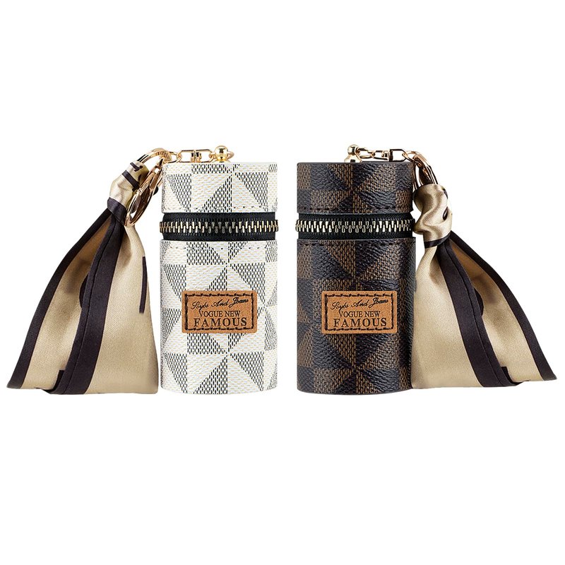Adorila 2 Pack Lipstick Case, Leather Lip Gloss Bag for Purse, Travel Lipstick Organizer with Keychain for Women (Brown, White)