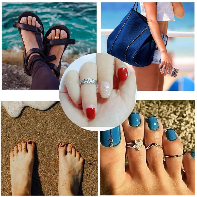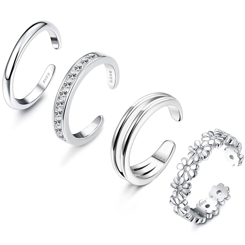 ADRAMATA 4 Pcs 925 Sterling Silver Toe Rings for Women Open Adjustable Band Rings Jewelry Set
