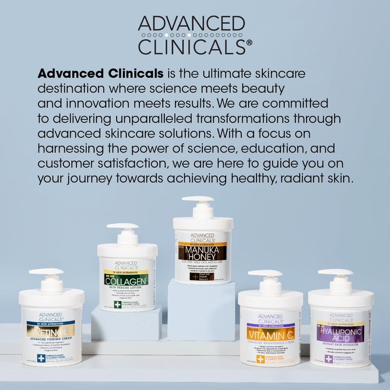 - BRIGHTEN & RESTORE – Dermatologist-Tested, Clinically-Tested, & Allergy-Tested. Manufactured In Our FDA Inspected Lab in Chicago, USA. Whatever your skin type, Advanced Clinicals has its natural solution. Restore a more youthful glow to your skin with the power of Retinol, Vitamin C, Lactic Acid, & scientifically proven formulas. At Advanced Clinicals, we’re committed to helping you feel confident in your skin. We prioritize your positive experience and ensure it with proven solutions.
