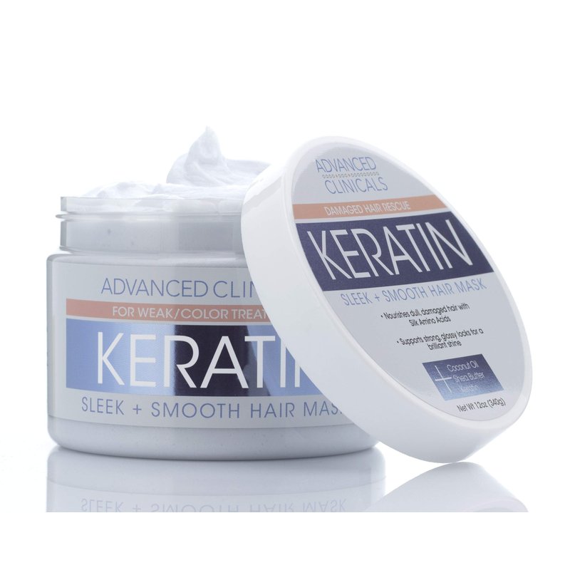 - KERATIN – The damage may be done, but it doesn’t have to be permanent. Dry, damaged, and dyed hair has met its match with Advanced Clinicals’ Keratin Hair Treatment Mask! Restore your hair’s beauty and shine!
