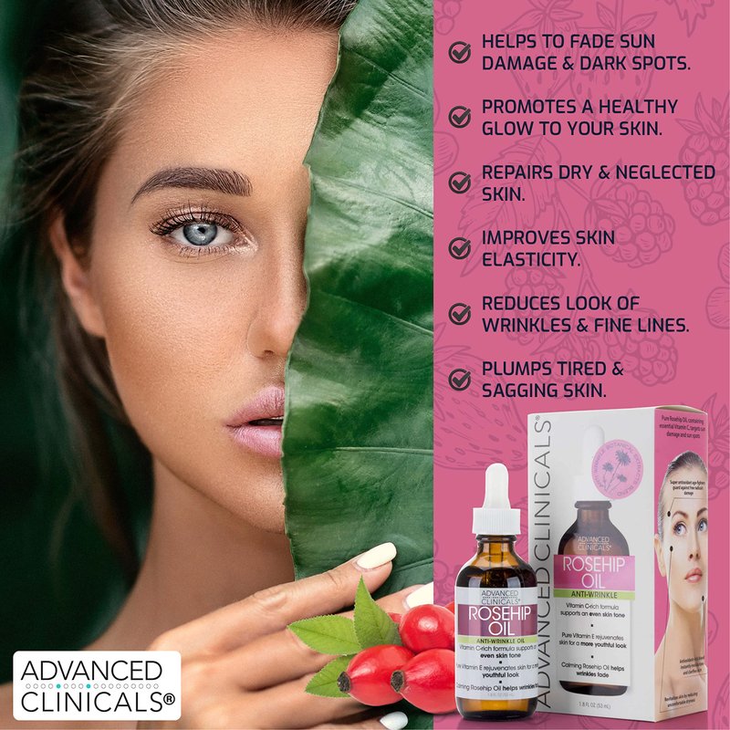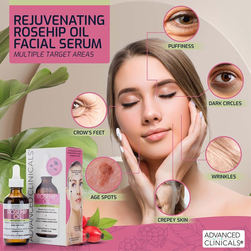 - MOISTURIZING AND EXTREME HYDRATION- Restore your skins youthful appearance with this top rated anti-aging face oil from Advanced Clinicals. Rosehip oil calms and hydrates any skin type (dry skin, oily skin, and sensitive skin) for a brighter complexion and improved elasticity.