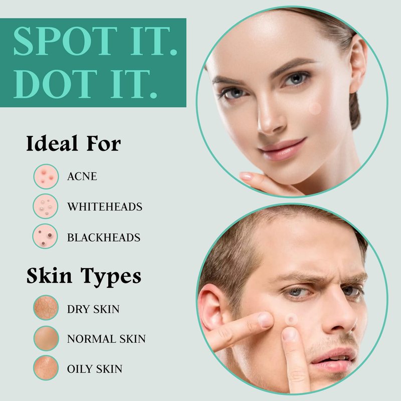 - SKIN-FRIENDLY & GENTLE - Our dots for spots acne patch made with the finest hydrocolloid and pure tea tree oil, ensuring secure adhesion without any skin irritation. Ideal for even the most sensitive skin types. Pamper your skin with the care it deserves!