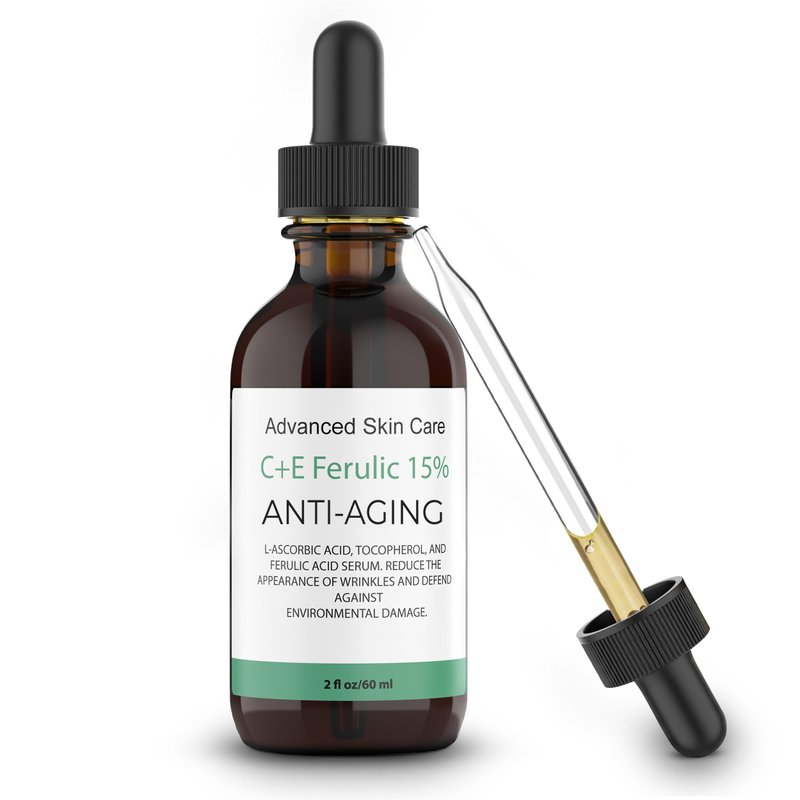 Advanced Skin Care 15% Vitamin C E Ferulic Acid Serum, 2 Oz / 60 ml - Unisex, Skin Serum, All Skin Types, UV Protection, Brightening, Rejuvenation