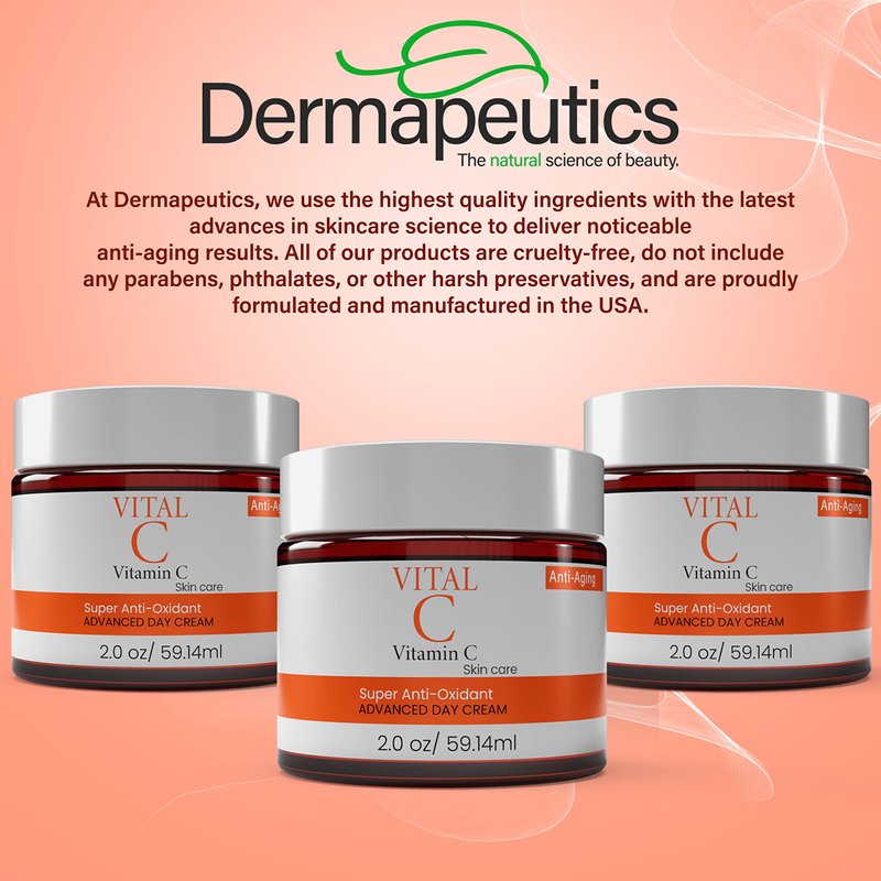 - Dermapeutics Vital-C Vitamin C Face Cream contains no parabens, dyes, or fragrances. Our products are proudly formulated and manufactured in California. Dermapeutics products are never tested on animals and are cruelty-free.