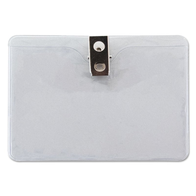 ADVANTUS Security and ID Badge Holder with Clip, Horizontal, 4 x 3" Insert Size, Vinyl, Box of 50 (75456)