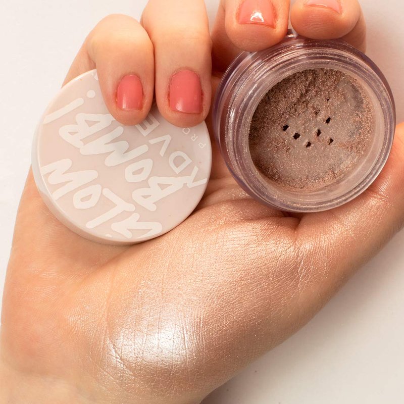 Glow Bomb is our wonderful Vegan Illuminating Powder, a super multifunctional product with an ultra-fine and velvety texture that brings an instant and comfortable grip to the skin, where it melts creating a long-lasting hyper-reflective GLOW!