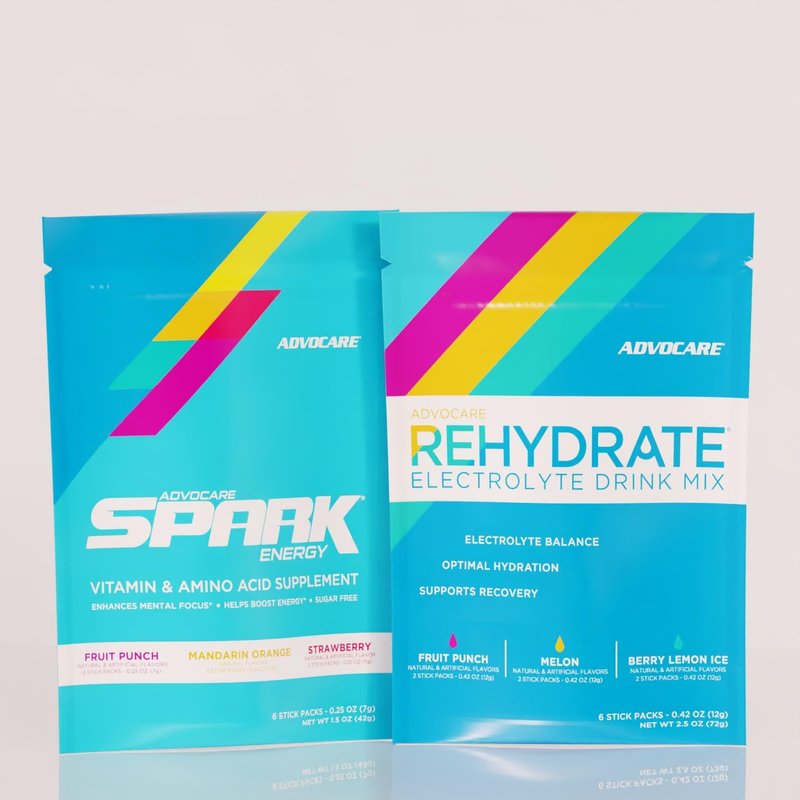 AdvoCare Refueling Energy Bundle - Includes Spark Energy Vitamin/Amino Acid Supplement & Rehydrate Electrolyte Drink Mix - Supports Energy & Hydration* - Various Flavors, 6 Stick Packs Each
