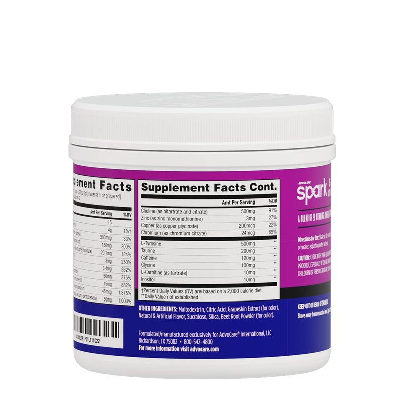 AdvoCare Spark Vitamin & Amino Acid Supplement - Focus & Energy Supplement Mix - Powdered Energy Supplement Mix - Powder Supplement Mix - Amino Acids - Grape - 10.5 oz