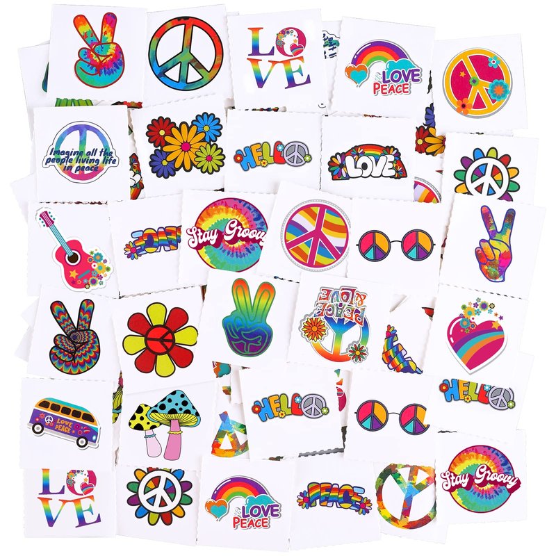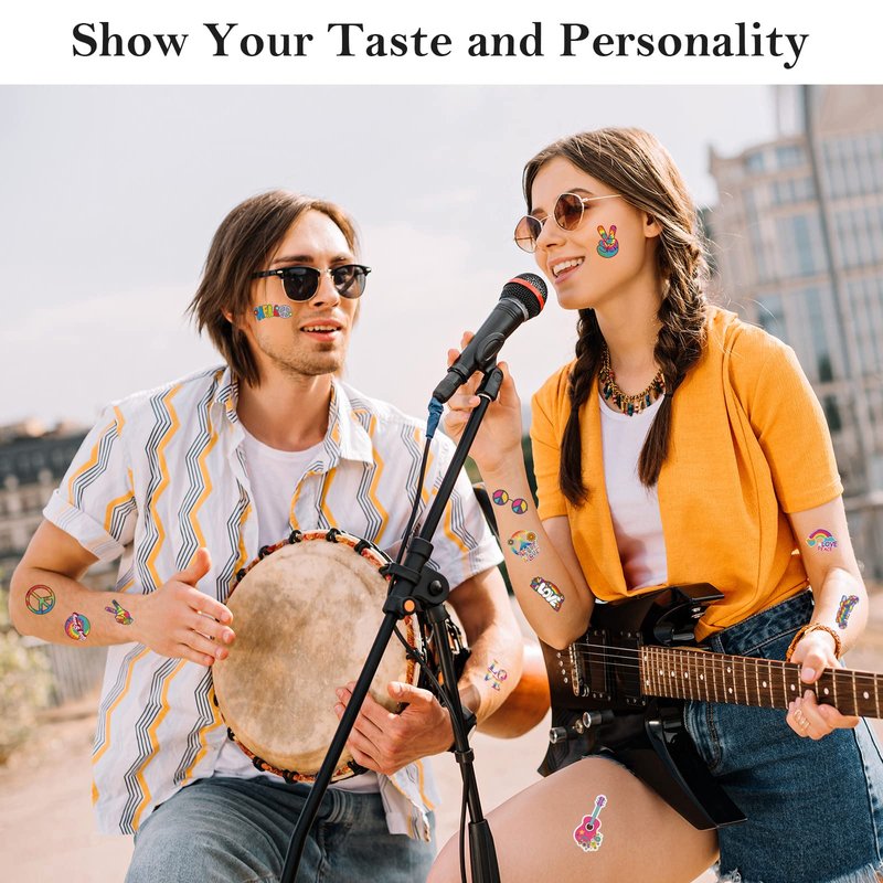 - Extensive applications: you can stick these waterproof hippie tattoos onto your arms, face, hands, ankles, etc. to show your personality; besides, the love and peace sign hippie tattoos match hippie clothing well, making them ideal choices for costume party