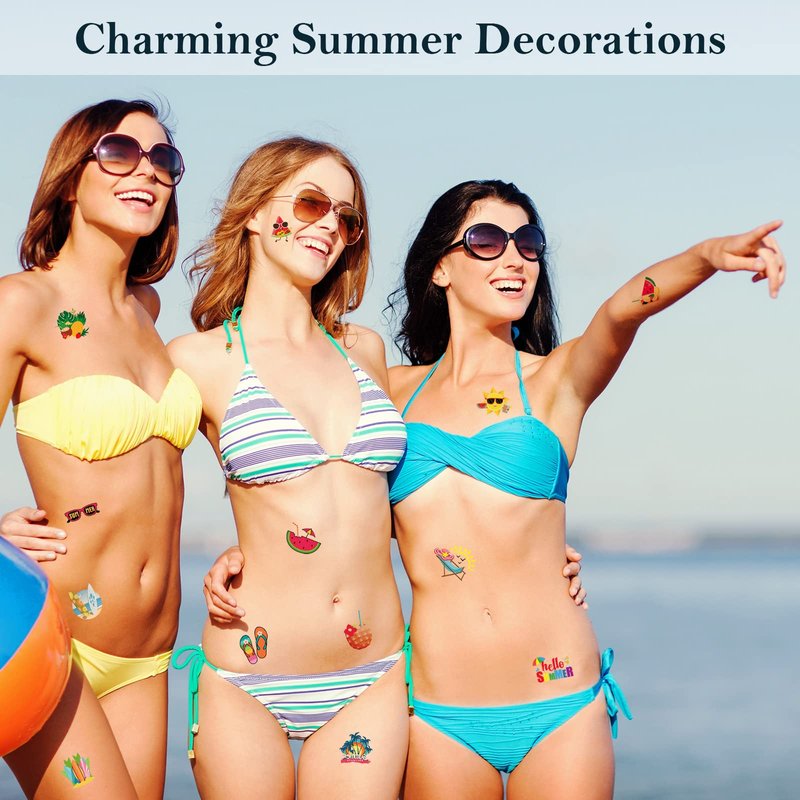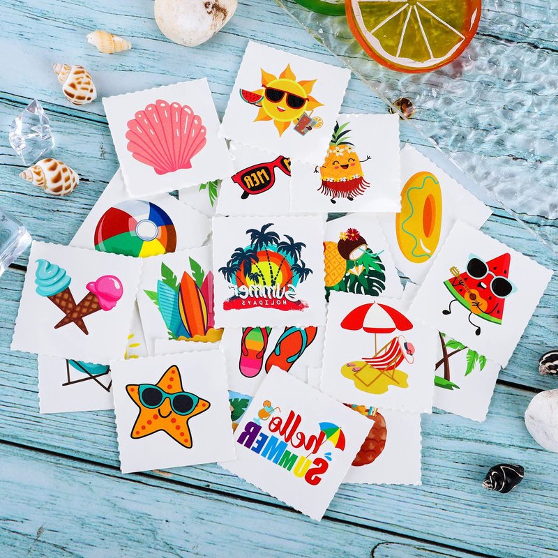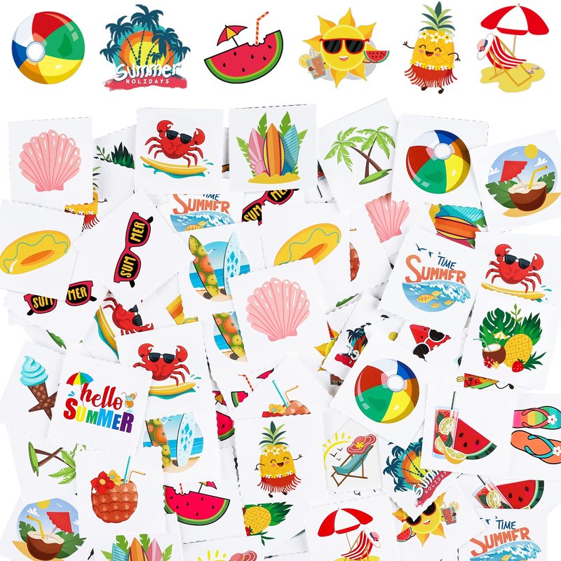 ADXCO 144 Pieces Summer Pool Party Tattoos Hawaiian Luau Themed Tattoos Waterproof Beach Temporary Tattoos Stickers for Kids and Adults, Tropical Party Decorations Supplies Favors (24 Styles, 6 Sheets)