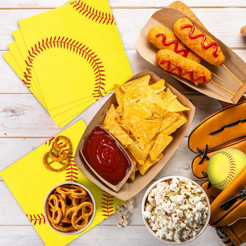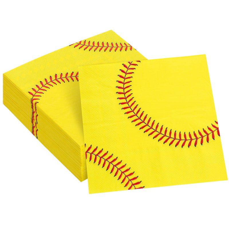 ADXCO 48 Pack Softball Paper Napkins 13 x 13 Inches Softball Disposable Napkins Paper Cocktail Napkins Sports Themed Party Napkins for Birthday Party, Softball Theme Party Supplies