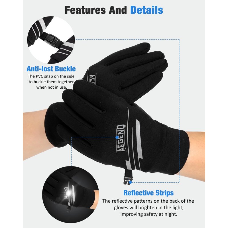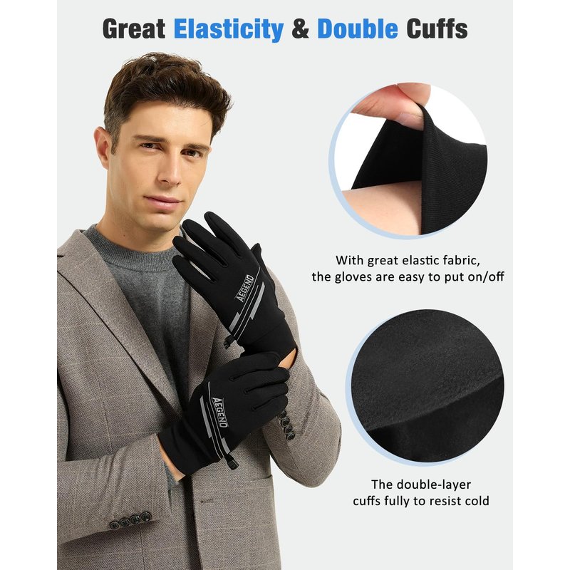- High-quality Fabrics: The Aegend warm gloves are made of upgraded high-quality material which contains 88% polyester and 12% spandex. The upgraded design provides a lightweight experience and higher finger dexterity. Moreover, it also provides premium performance for zero-pilling, durability, wicking and static-free, etc. These comfortable running gloves are also windproof and can keep your hands warm when you go outdoors.