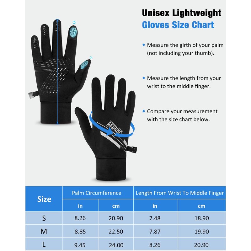 - Multiple-use: These gloves are unisex and come in 3 sizes for men and women. They will be a great and practical gift for friends and family. You can use them as liner gloves with skiing, cycling and other heavier gloves, or you can wear them as regular gloves in mild winter, spring or fall. Aegend Commits to providing 30-day no hassle returns & 12 months replacement warranty, 100% satisfied service!