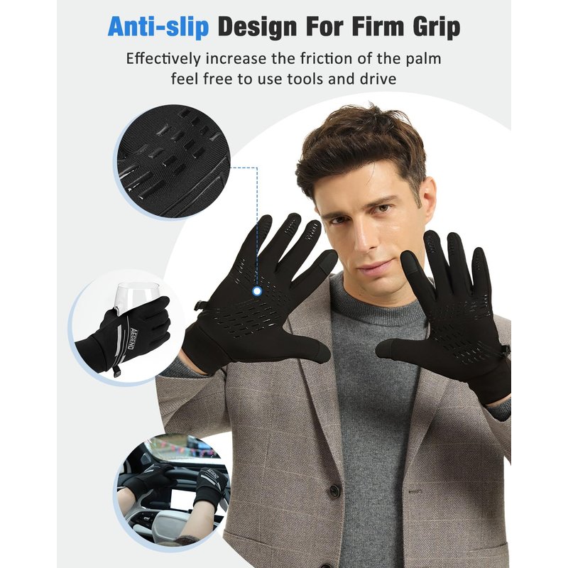 - Anti-slip For Firm Grip: These anti-slip gloves are embossed with non-slip silicone strips on fingers and palms which effectively increase the grip strength and abrasion resistance. This design makes gloves ideal for activities that require grip like driving, cycling, running, climbing or holding tools. The point is that it's good for holding your phone firmly during daily activities.