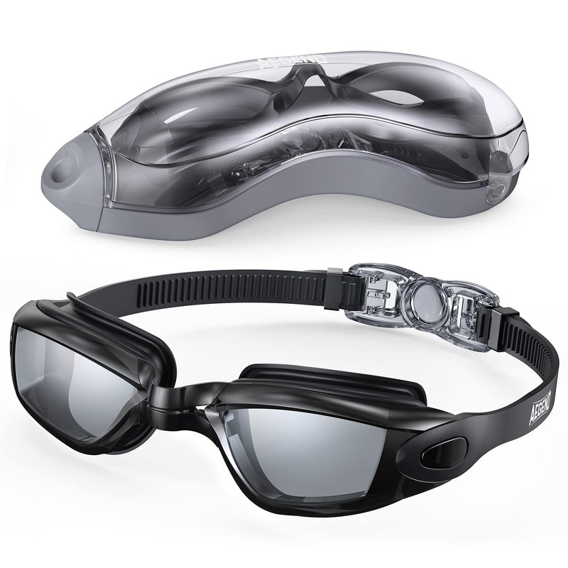 Aegend Swim Goggles, Swimming Goggles No Leaking Full Protection Adult Men Women Youth, Black-color Lens