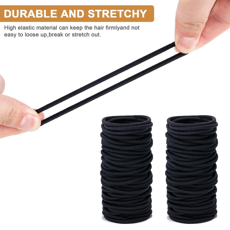 - ❤️【Great Value Pack 】100 pcs pack is enough for your daily use. Elastic Hair Ties is 4 mm in thickness,2" in diameter. Perfect for Long Lasting Braids,Ponytails,straight,thick,thin,fine,or curly hair and More.