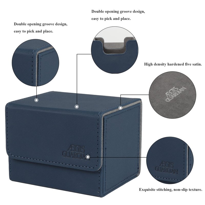 AEGIS GUARDIAN Card Deck Box for MTG, Commander Deck Box Hold 120+ Sleeved Cards, Leather Strong Magnet Card Deck Case Holder for Magic Cards TCG CCG, Blue