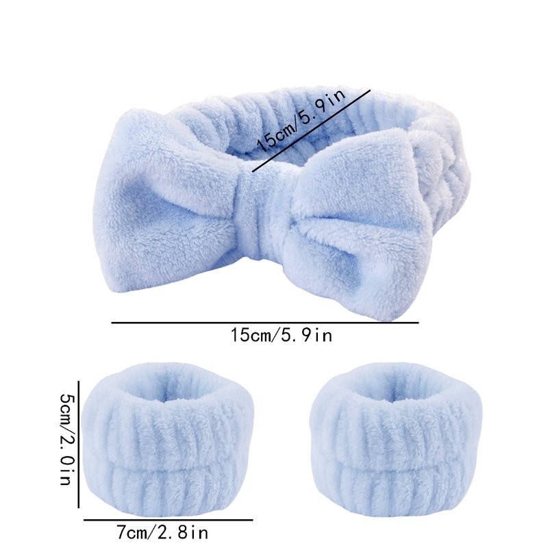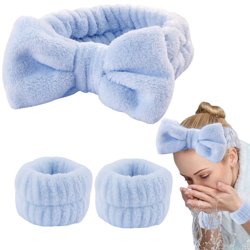 AEGYPIUS Spa Headband and Wristband Set | Coral Velvet Material | Blue | Face Washing Wristbands and Headband | Hair Headbands for Women Girls | Face Wash, Makeup, Yoga
