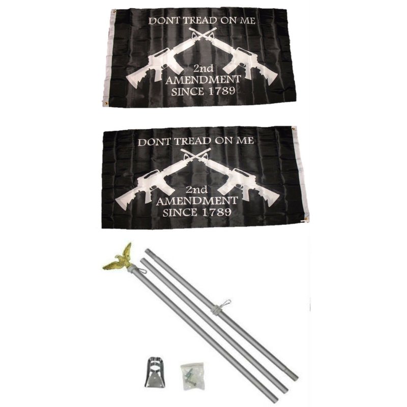 AES 2nd Amendment Crossed Rifles Black 3'x5' Polyester 2 Ply Double Sided Flag with 6' Aluminum Flag Pole Kit with Eagle Topper