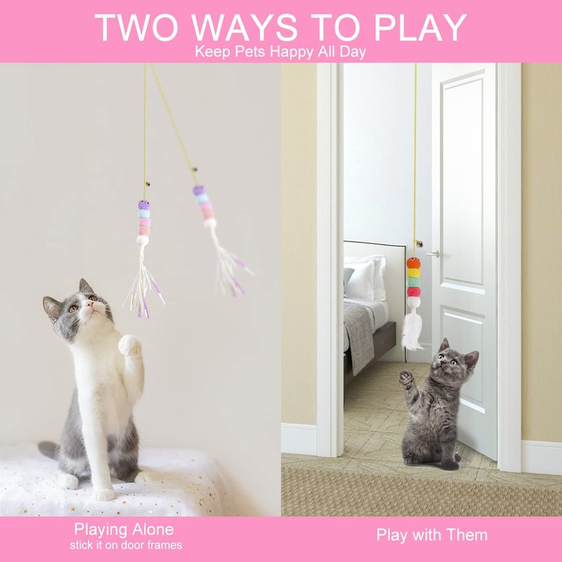 AESALUTOY Cat Toys for Indoor Cats, Interactive Cat Toy Wand Kitten Toys to Play Chase Exercise Cat String Pet Puzzle Toy for Cats Kittens, 2pcs