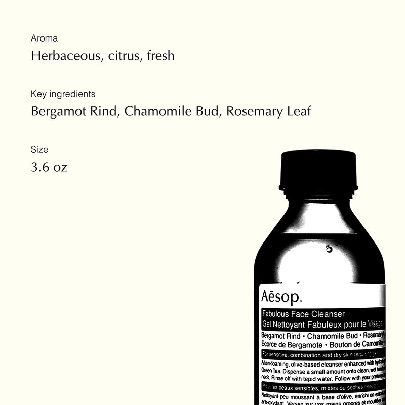 - Aesop Fabulous Face Cleanser: A mild formulation boosted with purifying, hydrating and skin-calming botanicals that cleanse gently without stripping the skin.