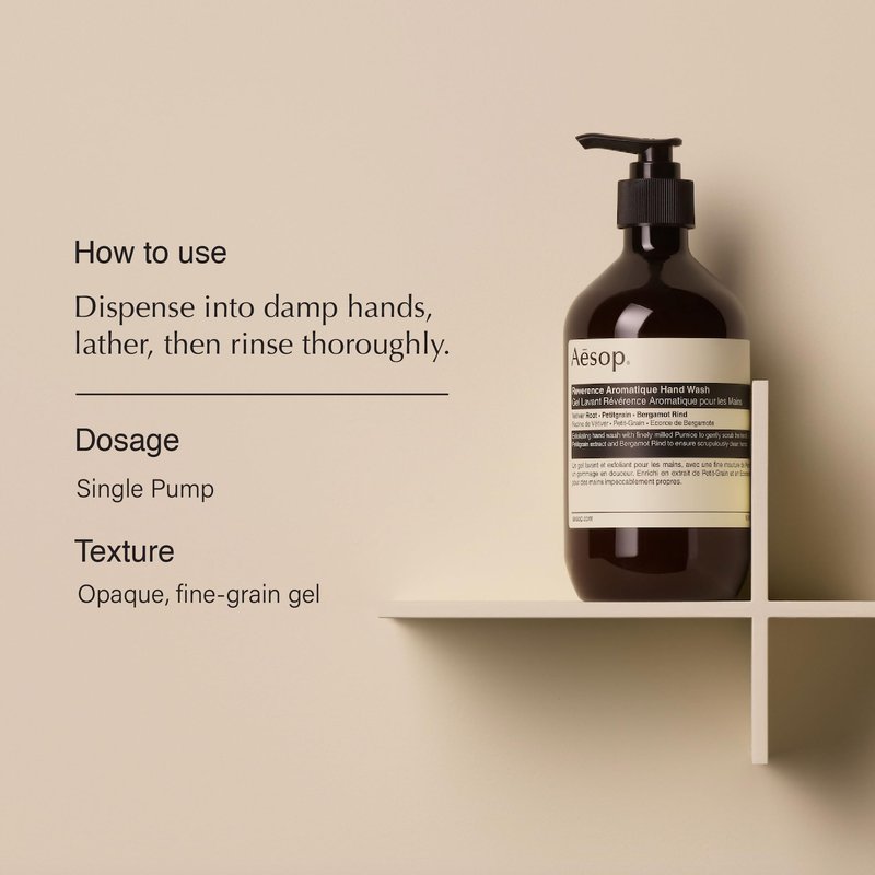 Discover the unique blend of Aesop Reverence Aromatique Hand Wash + Refill, formulated with botanical extracts and finely milled pumice to gently cleanse, exfoliate, and leave your hands smooth, purified, and refreshed. This hand wash provides a thoroughly cleansed, polished, and supple skin feel, accompanied by a woody, earthy, and smoky aroma. Key ingredients include Vetiver Root, Petitgrain, and Bergamot Rind. Additionally, the bottles are made from a minimum of 97% recycled plastics, reflecting Aesop’s commitment to sustainability. Enjoy a refined hand washing experience with this exceptional product.