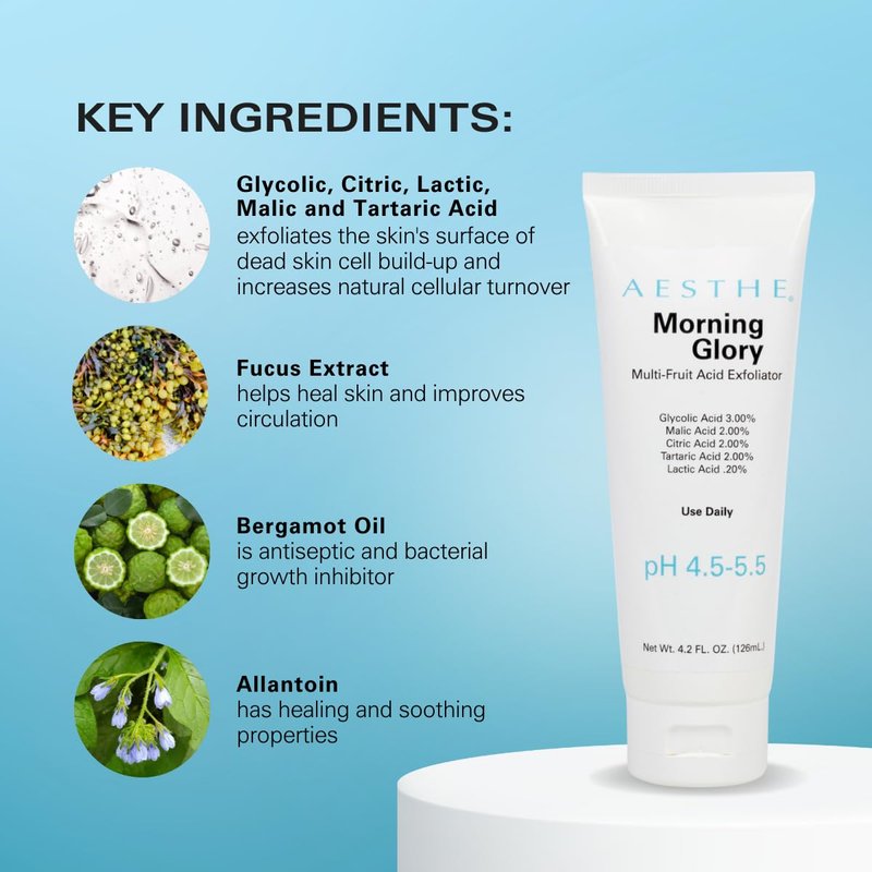 Aesthe Morning Glory Multi-Acid Exfoliant - Facial Scrub with 5 AHAs - Glycolic, Malic, Citric, Tartaric, Lactic Acids - For Cellular Turnover, Deep Cleansing - Oily, Acne-Prone, Mature Skin - 4.2 oz
