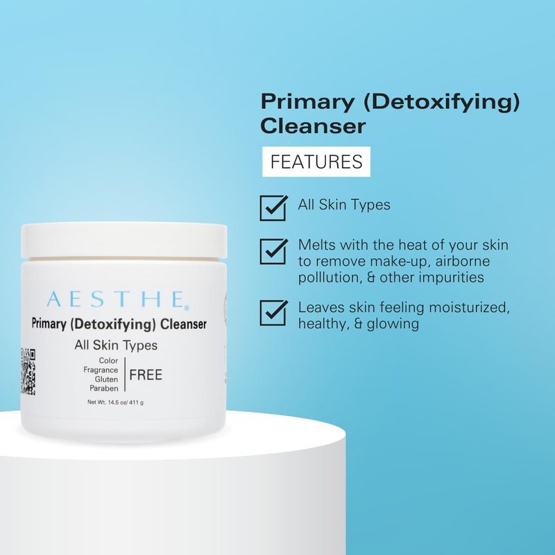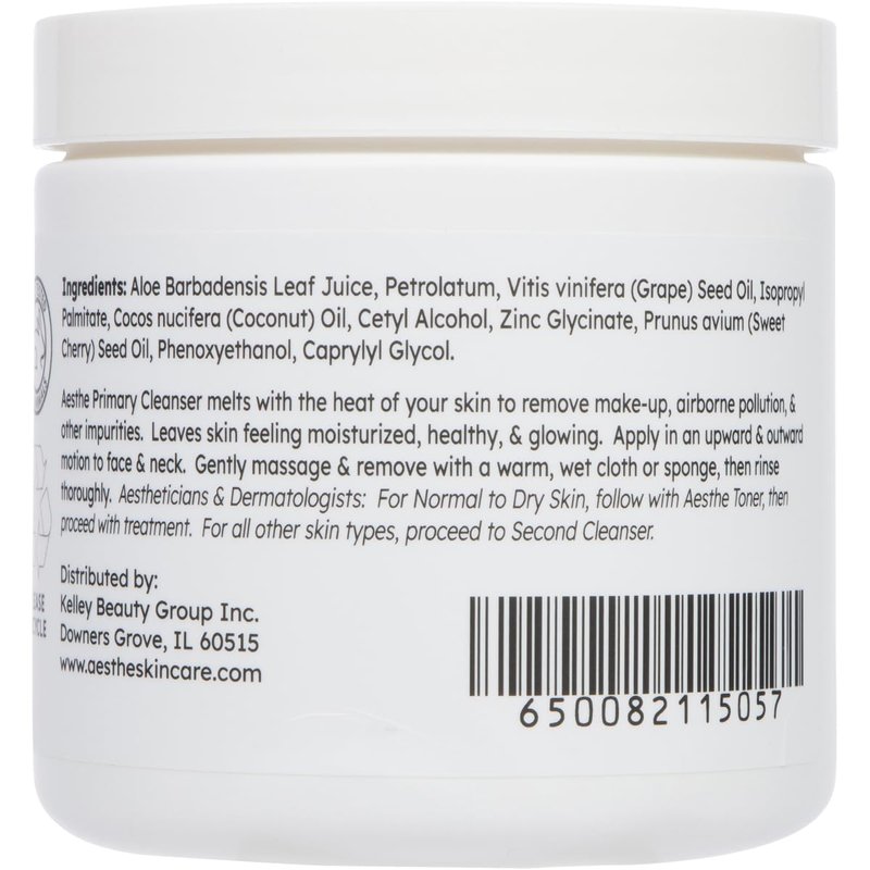 Experience the joy of fast, effective makeup removal and deep skin nourishment with Aesthe Primary Cleanser. Specially formulated for normal to dry skin types, this gentle yet comprehensive cleanser swiftly dissolves makeup and impurities while it offers a hydrating barrier, leaving skin feeling clean and refreshed. This moisturizing botanical formula is infused with ingredients that work harmoniously with your skin's natural oils. Use it daily to maintain moisture balance while cleansing. The blend dissolves at body temperature, providing a delightful, comfortable cleansing experience every time. Aesthe Primary Cleanser is easy to use, with a streamlined jar container that includes a convenient spatula—simply scoop the desired amount, massage into skin, and watch it effortlessly lift away makeup, dirt, and impurities. Rinse with warm water for an uplifting, invigorated look and feel. Revel in a lifestyle upgrade with a better skincare routine. Take heart that your effective new makeup remover and cleanser is recommended by skincare experts at the esteemed University of Aesthetics & Cosmetology. No animal testing, free of artificial ingredients and fragrance, and using minimal packaging, enjoy this natural, high-performing blend. Your radiant face is the ultimate reward—the superior cleansing and hydrating properties of this dissolving cleanser are truly transformative. Nourish your precious skin regularly with this natural cleansing formula to experience the difference for yourself.