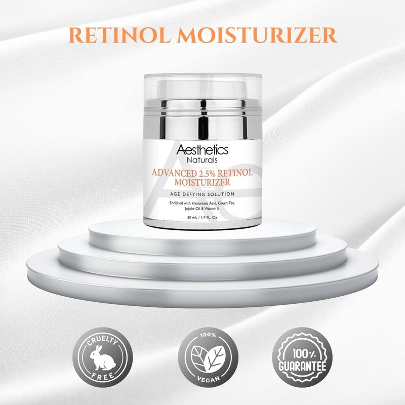 Aesthetics Naturals Retinol Cream - Anti-Aging Face & Neck Moisturizer with 2.5% Retinol, Vitamin E, Green Tea, Hyaluronic Acid, Organic Jojoba Oil, & Shea Butter, Day & Night Anti-Wrinkle Cream 1.7oz