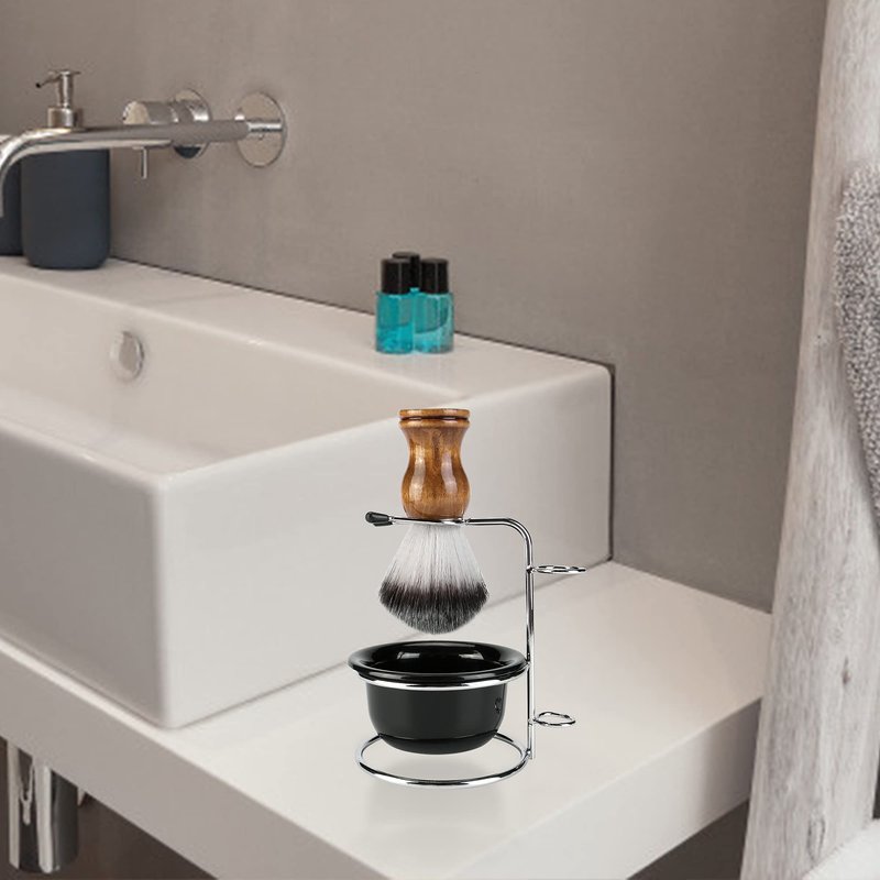 - 【3 in 1 Shaving Brush set】The blow made of high quality Acrylic, the stand is stainless steel, durable enough for your daily use. Package : 1x Shaving Stand, 1x Bowl and 1x Shaving Brush .