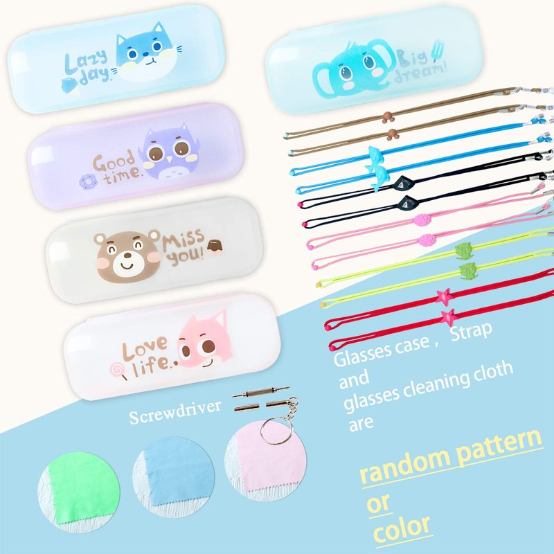 TIPS: Cleaning cloth, eyeglass strap and glasses box are all random patterns or colors.