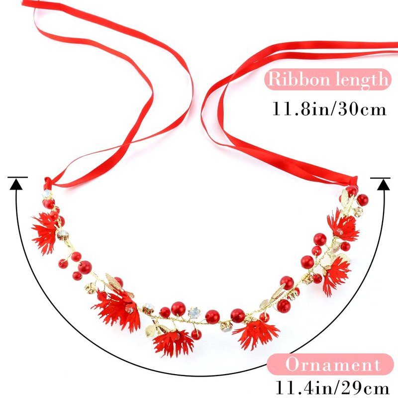 AEVBSOY 2 Pcs Wedding Hair Accessories for Girls Flower Wreath Headpieces Floral Pearl Hair Dress Crown Hair Flower Vine Headband for Flower Girls Bridal Wedding Hair Band, White, Red