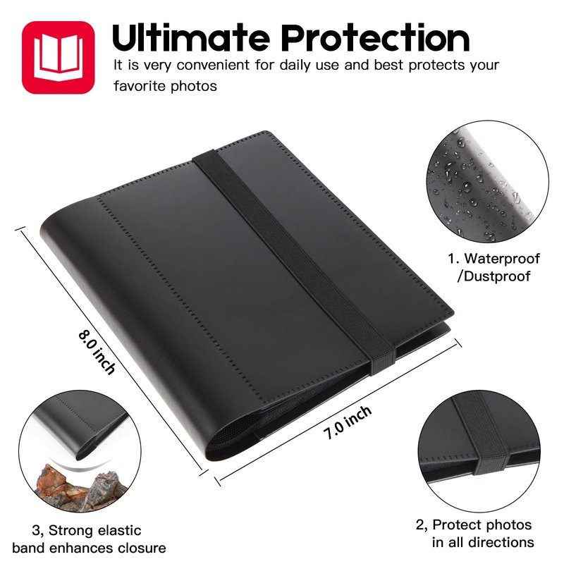 - 💗【Ultimate Protection Your Favorite Photos】-Our 5 x 7 album cover is very strong and not easy to tear, constructed of sturdy poly plastic. Side loading pocket design to prevent cards from easily falling out. Elastic strap holds the album shut when not in use. Protect your favorite 5x7" photos.